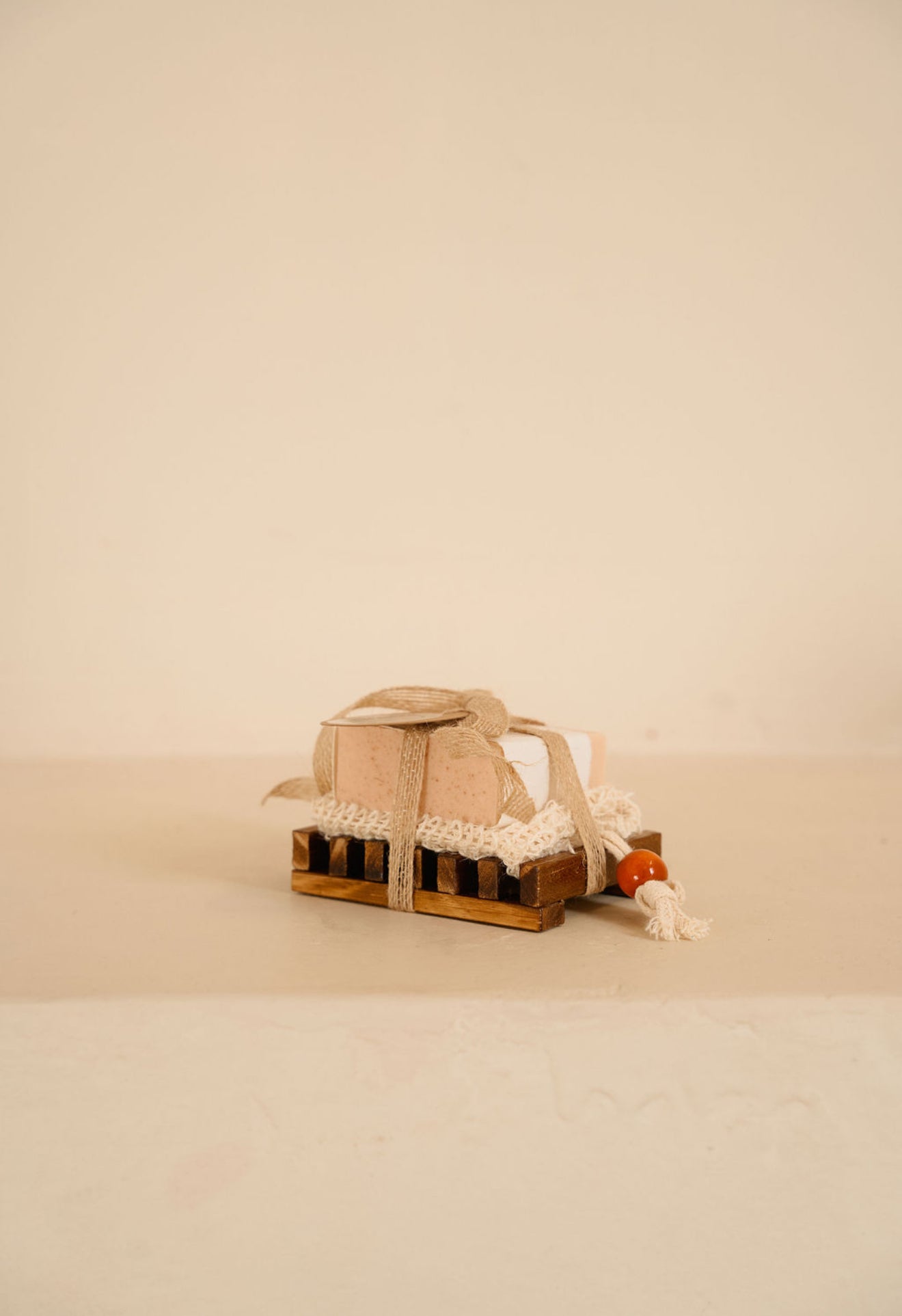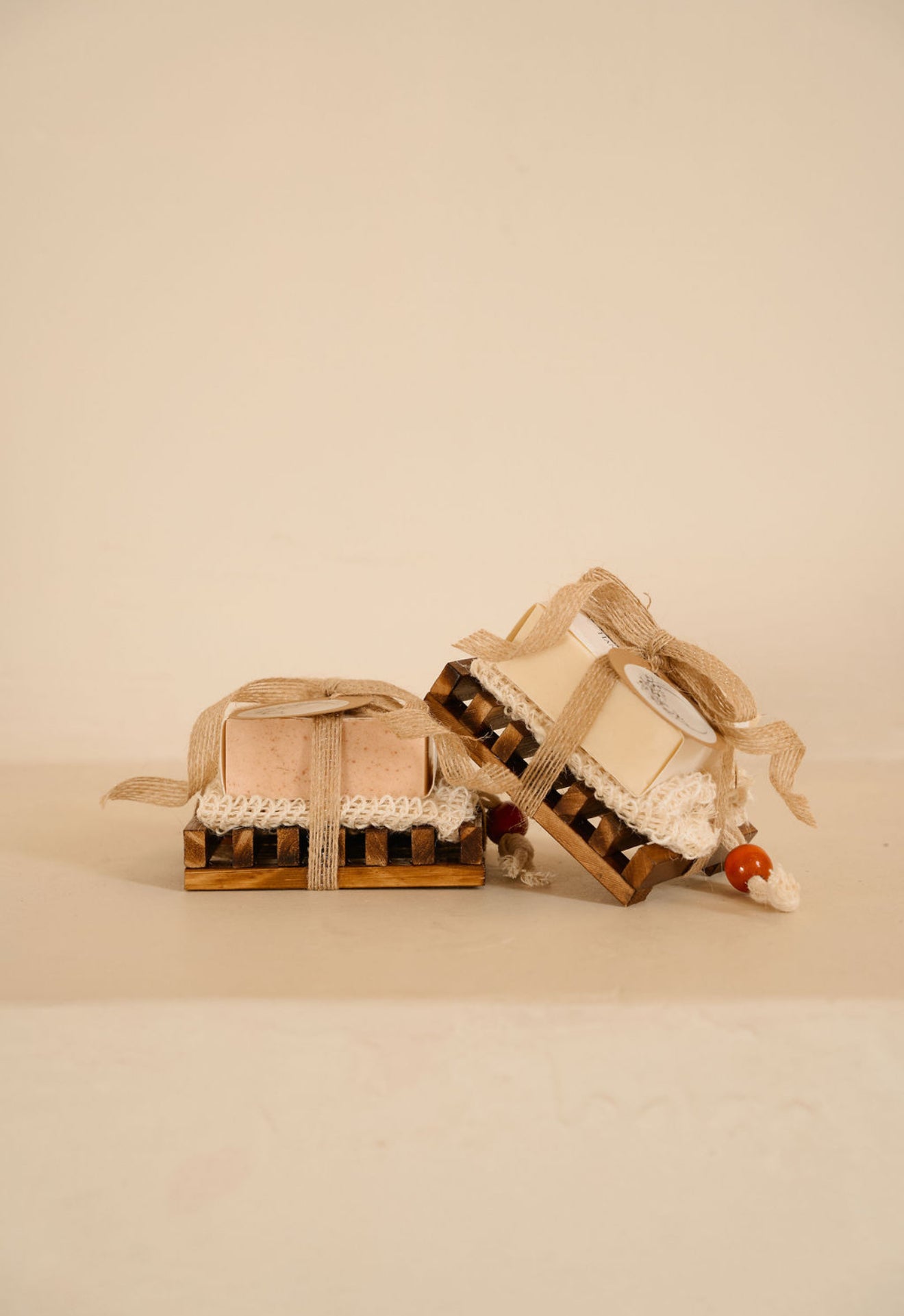 Elevate your daily self-care with our MoonLight Soap Tray Set. Each set includes a handmade wooden soap tray, a soap bag and one luxurious soap bar of your choice from our range of natural, skin-loving soaps.