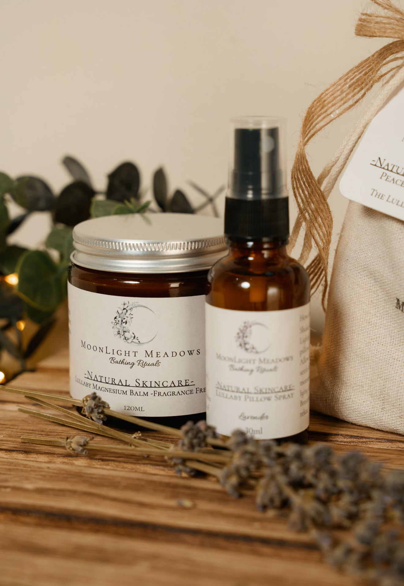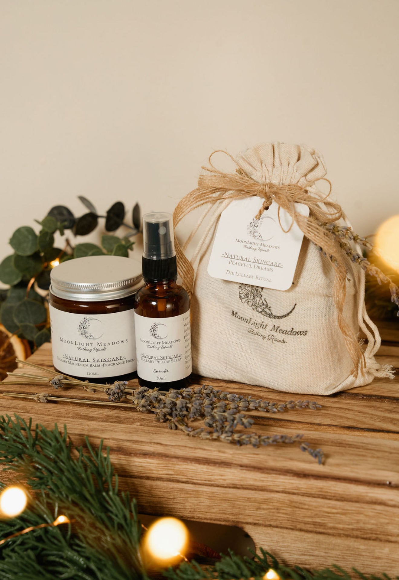Create the ultimate bedtime ritual with our Lullaby Set. Combining the calming aroma of our Lullaby Lavender Pillow Spray with the soothing touch of our Lullaby Magnesium Balm, this duo helps you unwind, ease tension and prepare your body and mind for a peaceful, restorative sleep.